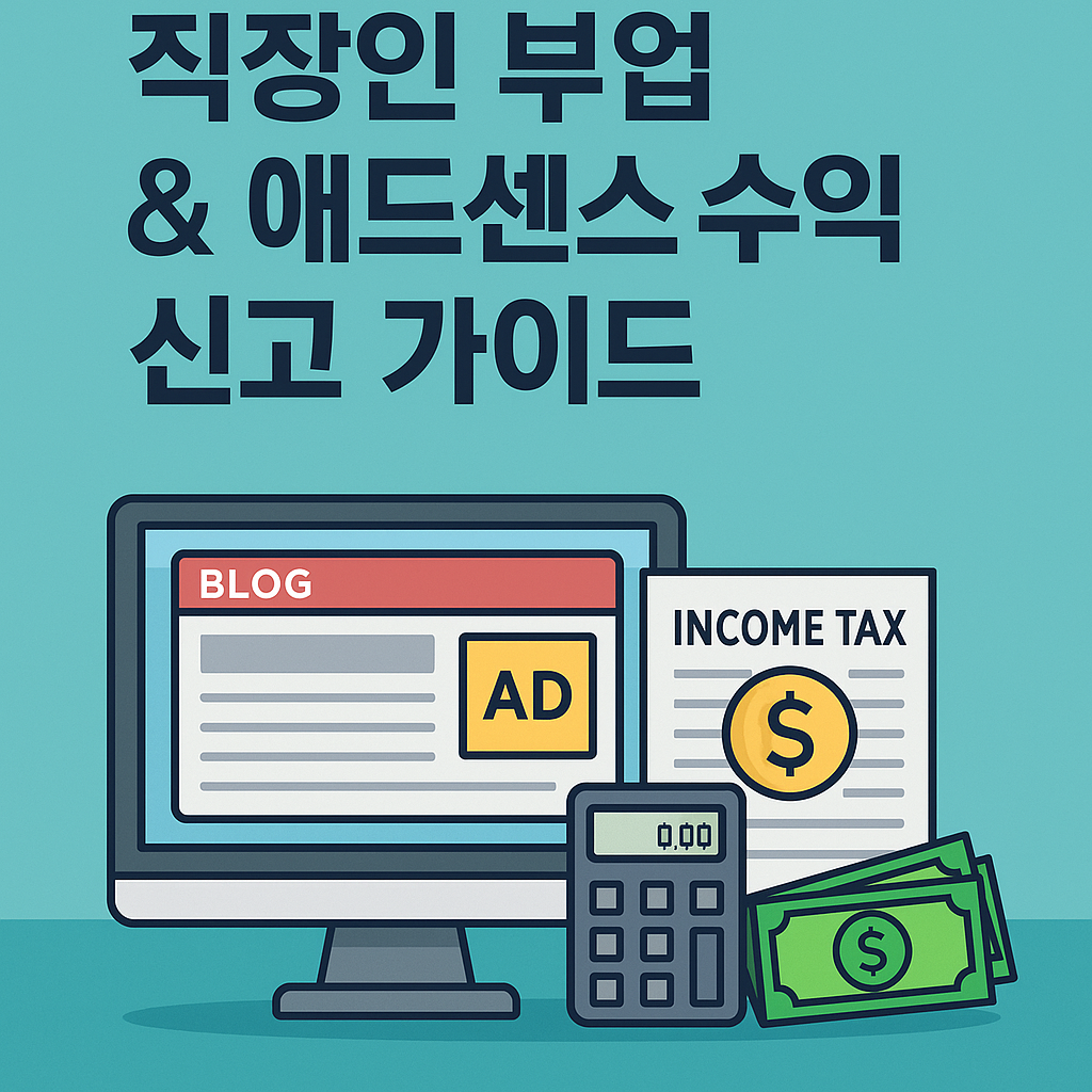 ✅ 왜 알아야 할까?요즘 직장인들 사이에서 부업이나 블로그·유튜브 애드센스 수익은 흔한 일이 되었습니다.하지만 소득 신고를 잘못하면 국세청의 추징이나 가산세를 맞을 수 있어요.따라서 직장인이라도 부업 소득 신고를 반드시 이해해야 합니다.1. 부업 소득, 신고해야 하나요?연간 100만 원 초과 소득: 종합소득세 신고 필수근로소득(회사 월급) + 부업 소득 = 합산 과세알바, 프리랜서, 블로그 광고 수익 모두 해당👉 핵심: “소득이 생기면 반드시 신고 대상”2. 애드센스 수익 신고 방법애드센스 수익은 기타소득 또는 사업소득으로 분류됨연간 수익이 300만 원 이하: 기타소득 신고 가능300만 원 초과: 사업소득으로 사업자등록 필요👉 팁: 처음엔 기타소득으로 신고하는 것이 간단합니다.3. 종합소득세 신고 시..