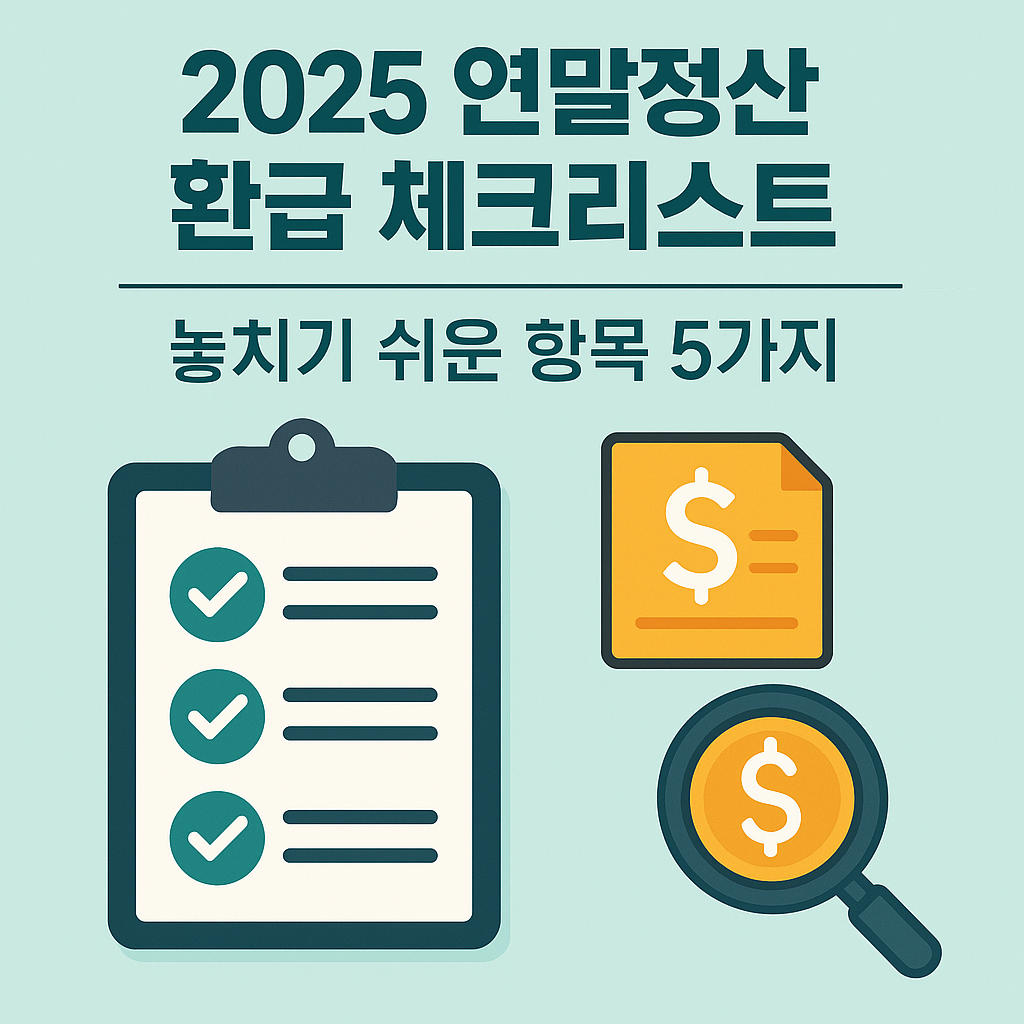 ✅ 왜 체크리스트가 필요할까?연말정산은 흔히 ‘13번째 월급’이라고 불립니다. 하지만 작은 실수 하나로 수십만 원의 환급액을 놓칠 수 있다는 사실!이번 글에서는 많은 사람들이 놓치는 5가지 항목을 체크리스트로 정리했습니다. 1. 의료비 공제 — 실손보험 제외 금액만 가능병원·약국 진료비는 대부분 공제 가능하지만 실손보험에서 보상받은 금액은 제외해야 함치아 임플란트, 라식·라섹은 공제 가능👉 팁: 진료비 세부내역서를 반드시 챙기세요. 2. 교육비 공제 — 교복·급식비도 포함본인 대학원 등록금, 자녀 학원비 일부 가능교복 구입비, 방과후 학교 비용, 급식비도 포함단, 미술·음악 학원비는 제외되는 경우 많음👉 팁: 교육비 납부확인서로 증빙해야 깔끔합니다. 3. 신용카드·체크카드 사용액 공제총급여의 2..