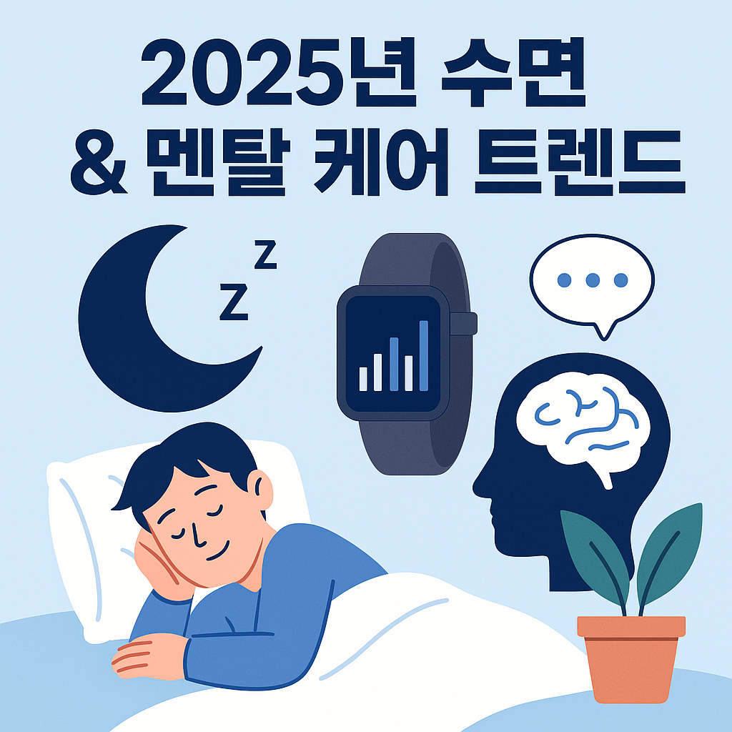 2025년 수면 & 멘탈 케어 트렌드✅ 왜 수면과 멘탈 케어가 중요한가?현대인의 건강 문제는 단순히 체중이나 체력 관리에 그치지 않습니다.수면 부족과 정신적 스트레스가 생활 전반에 큰 영향을 주면서,2025년에는 수면의 질 & 멘탈 헬스케어가 핵심 키워드로 떠오르고 있습니다.1. 2025년 수면 관리 트렌드수면 추적 웨어러블 기기스마트워치·수면 밴드로 수면 패턴 측정깊은 수면·얕은 수면 비율 분석 → 맞춤형 개선 가이드AI 기반 수면 코칭AI 앱이 수면 데이터 분석 → 수면 습관 교정예: 수면 시간 알림, 숙면을 돕는 음악 추천수면 친화적 환경(슬립테크)스마트 조명·온도 조절 → 최적의 수면 환경 제공차음·아로마 기기 → 수면 질 향상2. 2025년 멘탈 케어 트렌드마인드풀니스 & 명상짧은 호흡 명상·마..