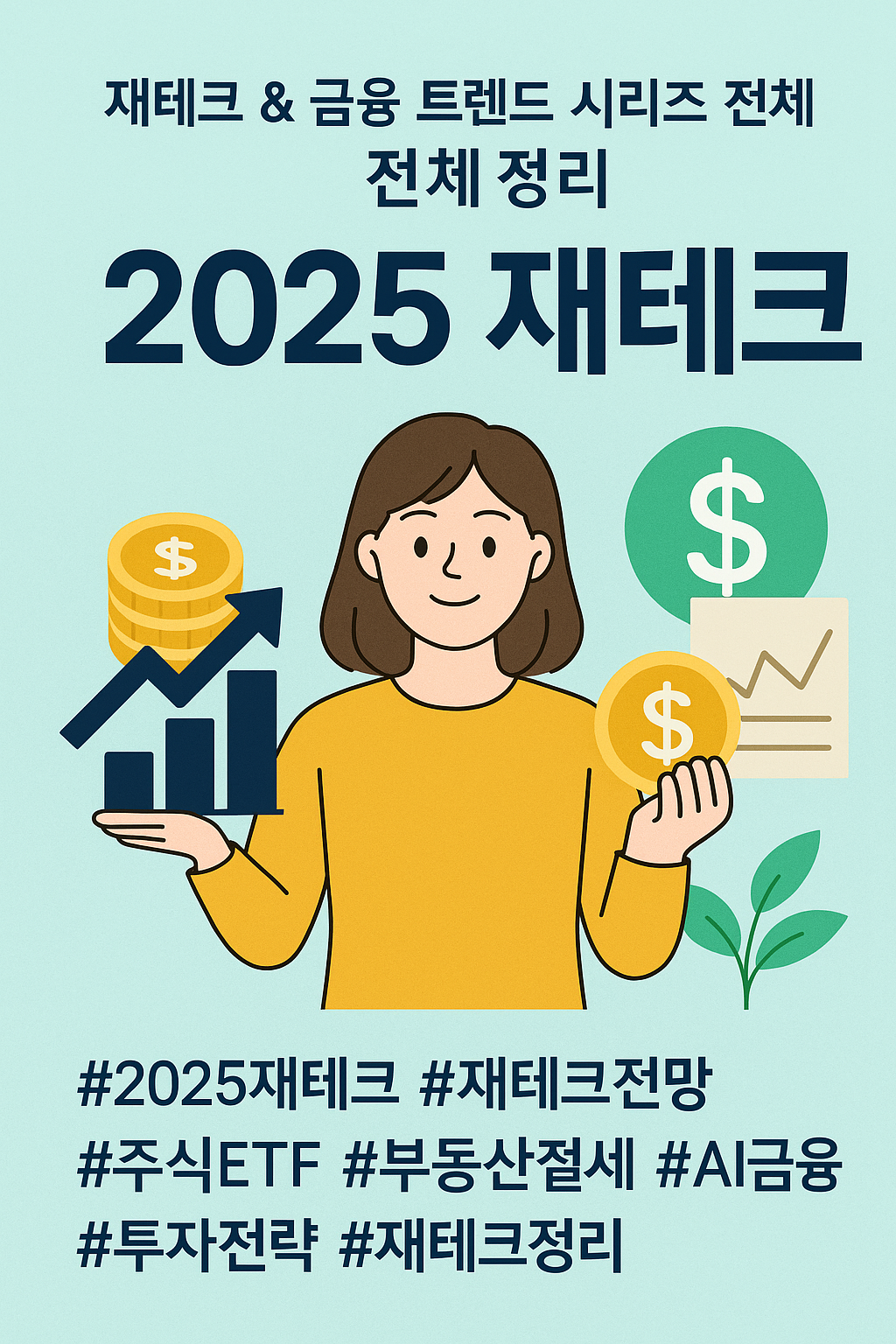 재테크 & 금융 트렌드 시리즈 전체 정리✅ 1~12편 핵심 요약2025 재테크 시장 전반 전망→ 금리·인플레이션 완화, 미래 산업 투자 기회 확대주식 & ETF 투자 트렌드→ AI·반도체·친환경 ETF 강세, 분산투자 필수부동산 시장과 절세 전략→ 정책·세금·금리 3요소 체크, 장기 보유 & 절세 전략 중요가상자산 동향→ 비트코인 ETF 승인, 이더리움 업그레이드, 변동성 주의스테이블코인 & 디지털 달러→ 글로벌 금융 시스템 변화의 핵심, 제도권 확산Z세대 & MZ세대 투자 성향→ 소액·디지털·트렌드 중심 투자, 투자 문화 변화 주도직장인 소액 투자 전략→ ETF·적립식·자동화 투자로 장기 습관 만들기프리랜서 & 자영업자 재테크 꿀팁→ 불규칙 수입 → 현금 흐름 관리 + 절세 전략 필수글로벌 경제 뉴스 ..